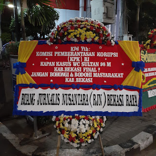 Bekasi, pospublik.co.id - Komisi Pemberantasan Korupsi (KPK) RI kembali mendapat karangan bunga dari masyarakat Bekasi dan Lembaga Masyarakat penggiat anti korupsi, eperti: Ruang Jurnalis NUSANTARA (RJN) dan LSM Master karena KPK terindikasi hendak mempetieskan kasus pengadaan WC (toilet sultan) 488 unit untuk sekolah di Kabupaten Bekasi senilai Rp.98 Miliar tahun 2020.